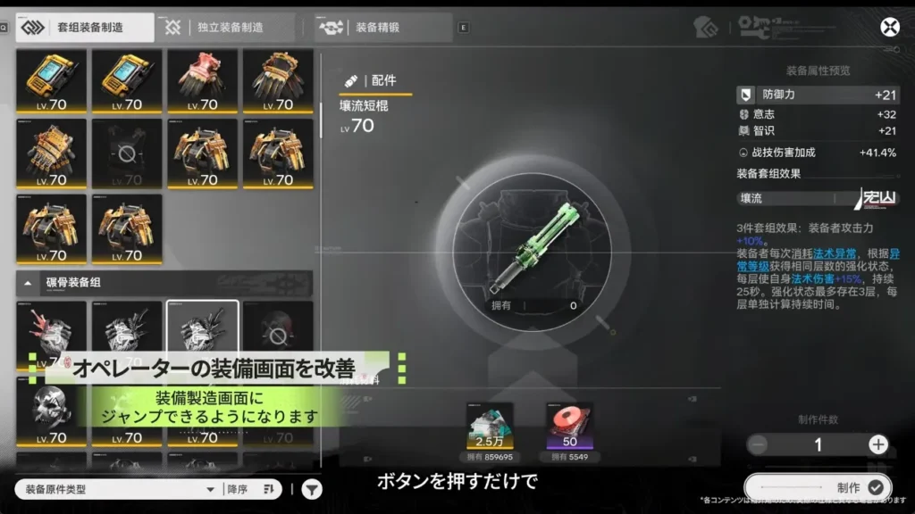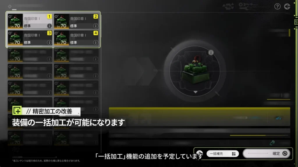 装備の一括加工が可能に基質厳選の改善