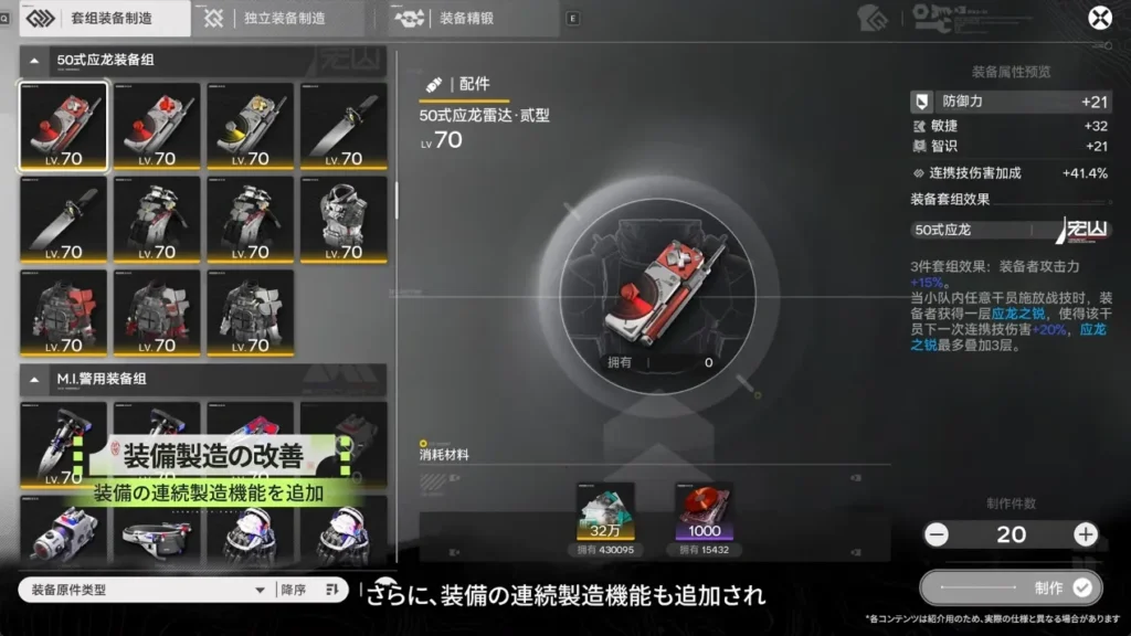 「緋銅装備部品」で新装備が製造可能に!