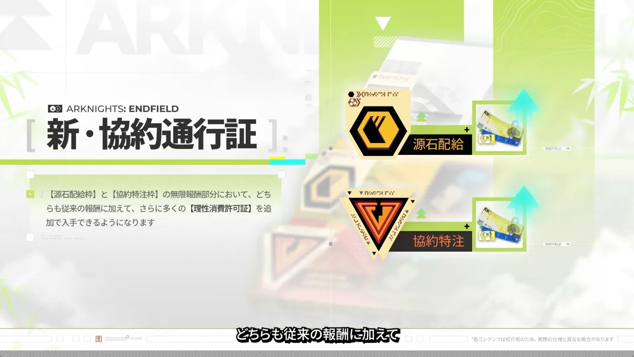 ▼// 新バージョンの協約通行証に理性消費許可証が追加!#エンドフィールド pic.twitter.com/MsHy80DYKr