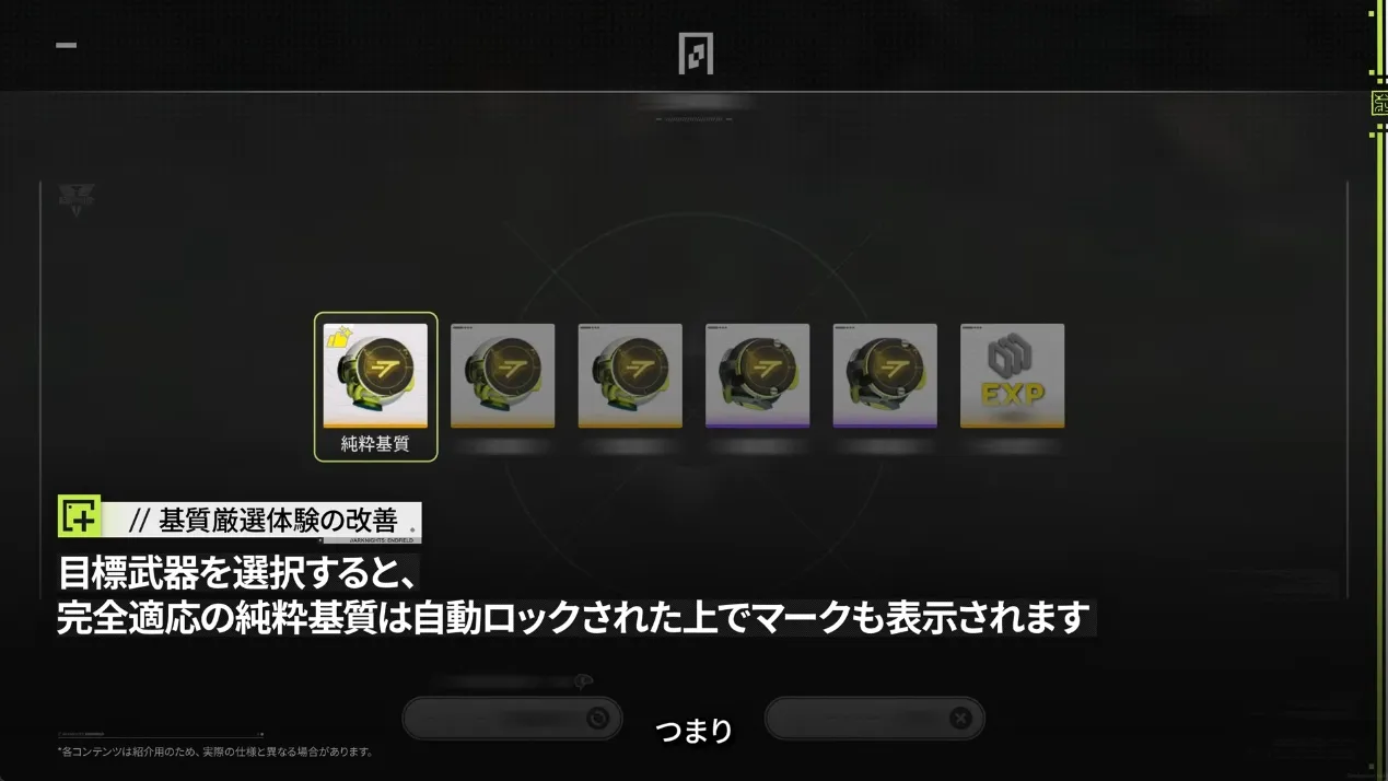 目標武器を選択すると、完全適応の純枠基質は自動ロックされた上でマークを表示される任務画面の表示改善