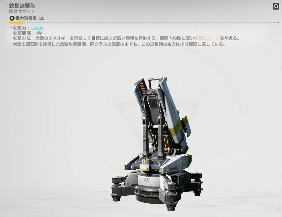 そりゃお膳立てしたオペレーターもあれくらい出るけど迫撃砲君は電気だけで動くんだもうオペレーターなんて要らないんだ迫撃砲フィールドにしよう